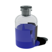 透明な瓶に入った青い液体……。